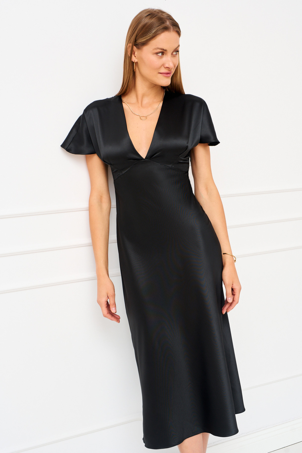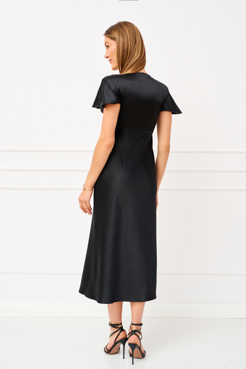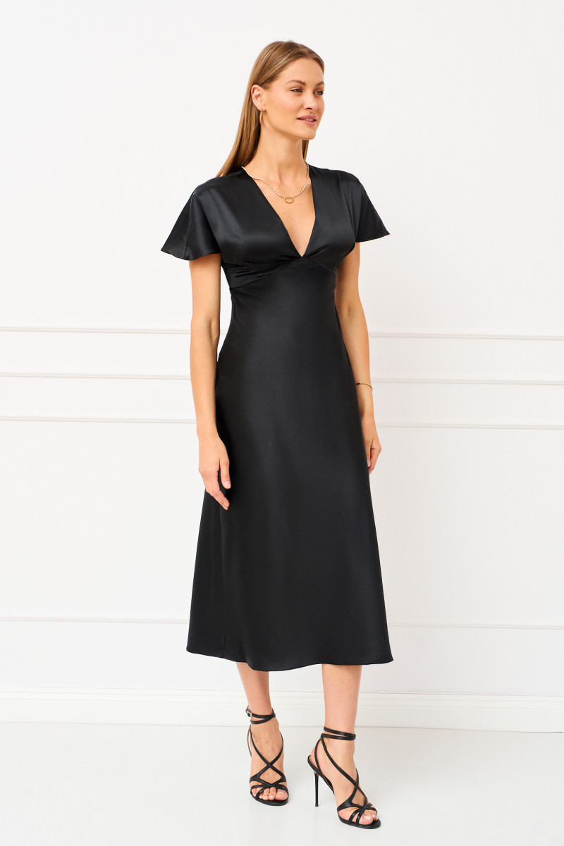 Женское платье полуприлегающего силуэта выполнено из плотного сатина с подрезами и складками расположенными под линией груди; рукава цельнокроеные; горловина имеет v -образную форму; в боковом шве молния. Платье полностью соответствует заявленному размеру, пожалуйста пользуйтесь таблицей замеров готового изделия.