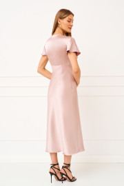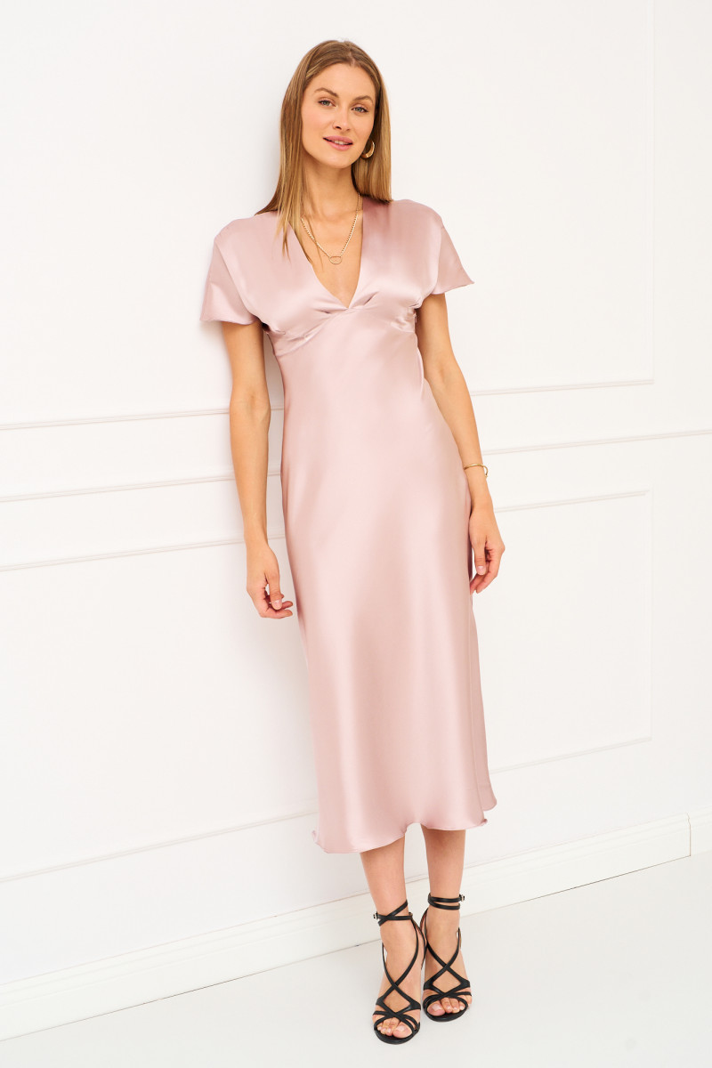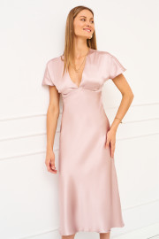 Женское платье полуприлегающего силуэта выполнено из струящегося сатина с подрезами и складками расположенными под линией груди; рукава цельнокроеные; горловина имеет v -образную форму; в боковом шве молния. Платье полностью соответствует заявленному размеру, пожалуйста пользуйтесь таблицей замеров готового изделия.