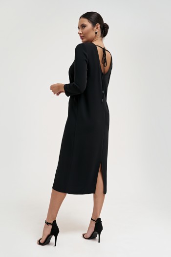 Тренч свободного силуэта на подкладке. Выполнен из эко-кожи. По переду прорезные карманы и отлетные кокетки. Воротник пиджачного типа. На рукавах функциональные паты. По спинке отлетная кокетка. В боковых швах шлевки для съемного пояса.