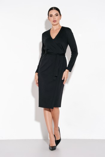 Классическое женское платье-поло полуприлегающего силуэта со втачными рукавами, с отложным воротником и застежкой-планкой на кнопки. Изделие выполнено из мягкого высококачественного трикотажа с содержанием вискозы, воротник и планка - из джинсовой ткани. При правильном уходе ткань не скатывается и не усаживается.