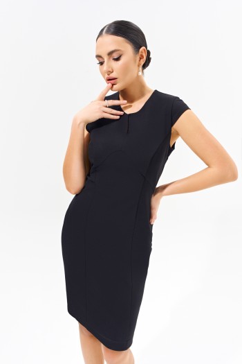 Платье женское прилегающего силуэта выполнено из высококачественного хлопкового полотна "лапша", горловина и пройма дополнены довязом молочного цвета.
